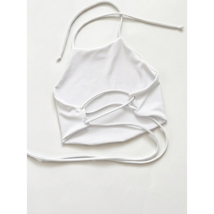 Топ для тверку “Білий Ангел” — білий топ на зав’язках із золотистими люверсами